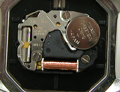 綺麗になったケースにムーブメントを戻して電池格納部をチェックします。