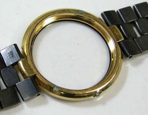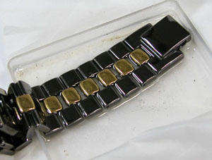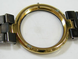 ケースは洗浄出来ず。というのもガラスの黒い外周はプリント。そこで裏蓋を閉めてバンド毎洗浄して綺麗になりました。
