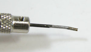 割ピン半分を削り落としても、反対側は抜けない。この割れたところこあらボーリング。