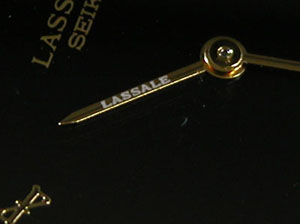 おや?短針に汚れが・・・いえ針に「LASSALE」の文字が、これはシブイ。