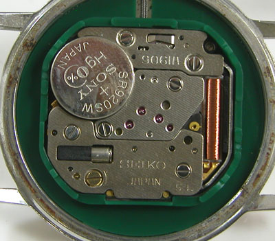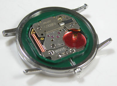 綺麗になったケースにムーブメントを戻して電池格納部をチェックします。