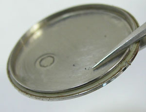 裏蓋の裏側もチェックしますがパッキンが無い様に見えます。良く見ると潰れて裏蓋と同化していますね・・。