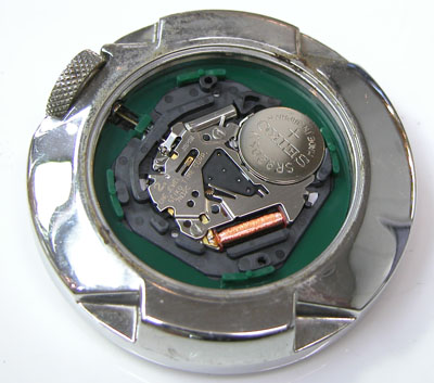 綺麗になったケースにムーブメントを戻して電池格納部をチェックします。
