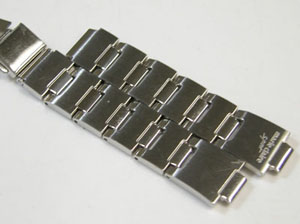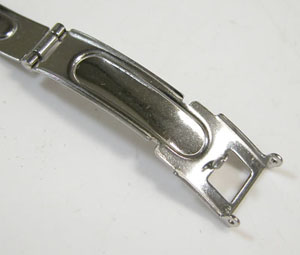 ステンレス板巻きバンドに三つ折れプッシュバックル。