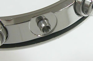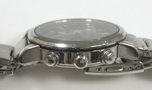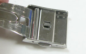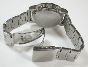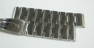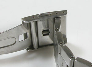 ステンレス無垢バンドに三つ折れプッシュバックル。