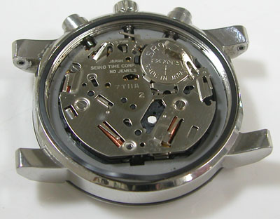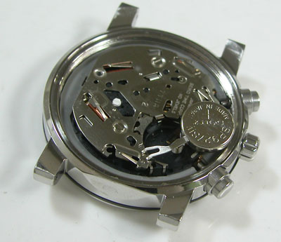 この粉がムーブメントに回っていて動きません。ところがクロノグラフは動きます。