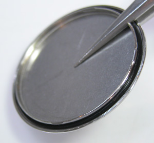 綺麗になったケースにムーブメントを戻して電池格納部をチェックします。