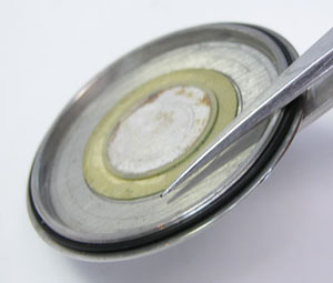 綺麗になったケースにムーブメントを戻して電池格納部をチェックします。