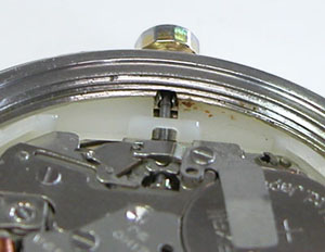 綺麗になったケースにムーブメントを戻して電池格納部をチェックします。