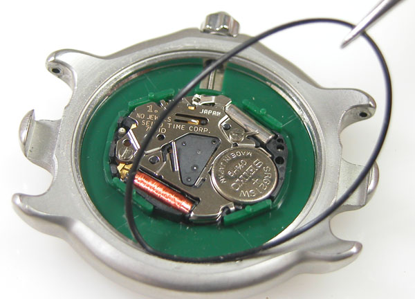 綺麗になったケースにムーブメントを戻して電池格納部をチェックします。