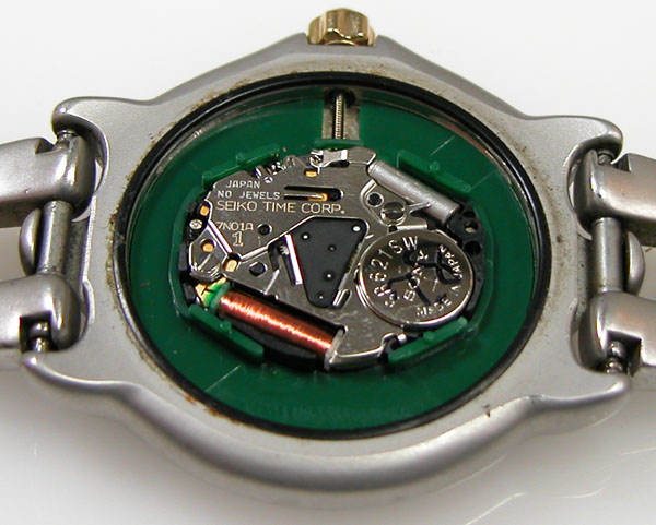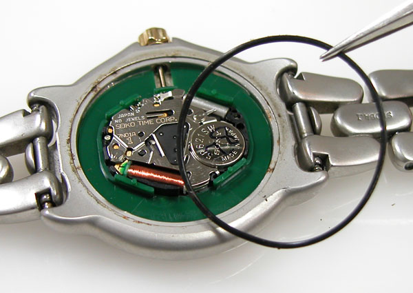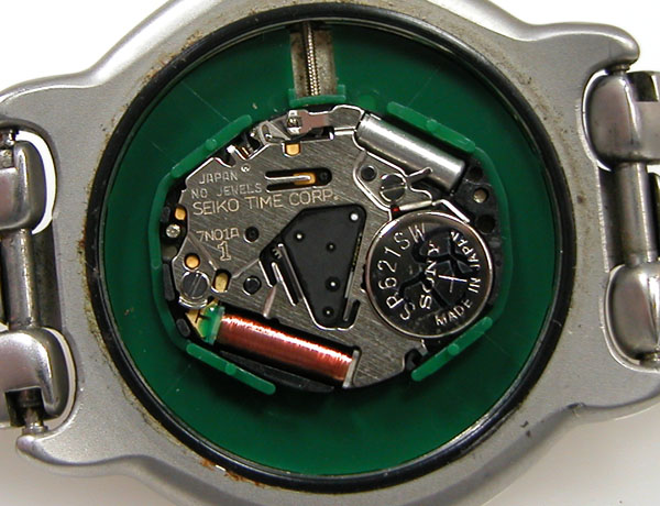 綺麗になったケースにムーブメントを戻して電池格納部をチェックします。