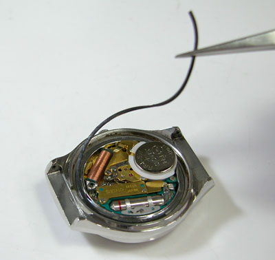 綺麗になったケースにムーブメントを戻して電池格納部をチェックします。