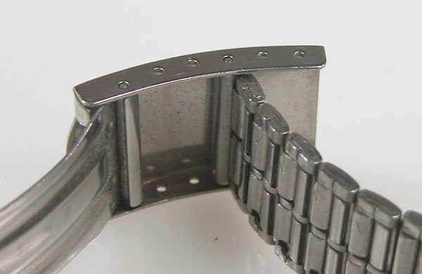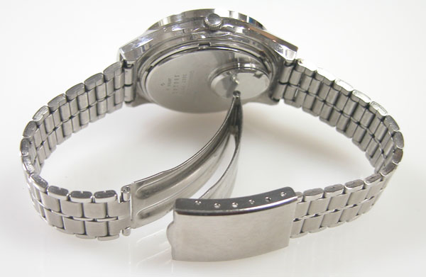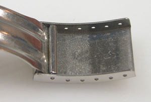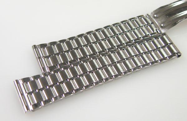 ステンレス板巻きバンドに三つ折れバックル。