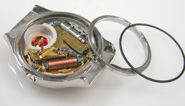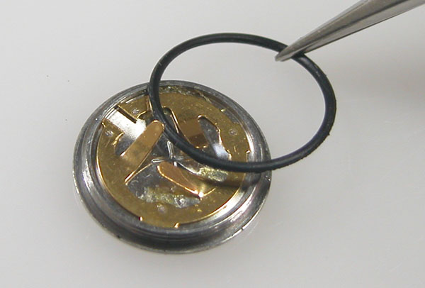 外したパーツを戻していき電池を入れて動作確認。パッキンにシリコン塗布をしてケースに戻します。