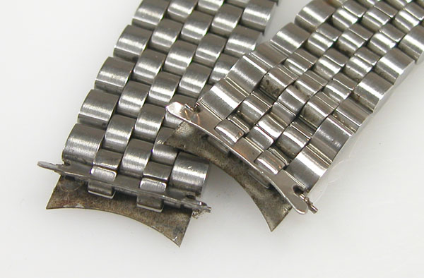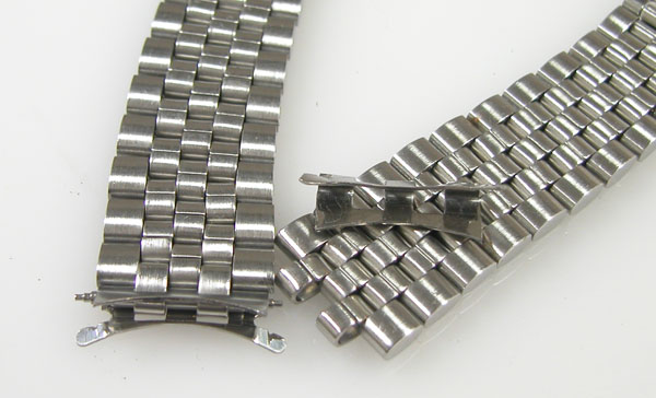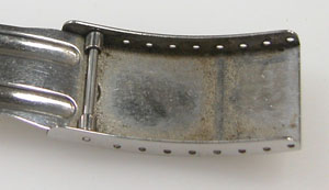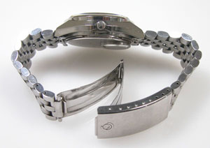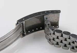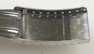 ステンレス無垢バンドに三つ折れバックル。