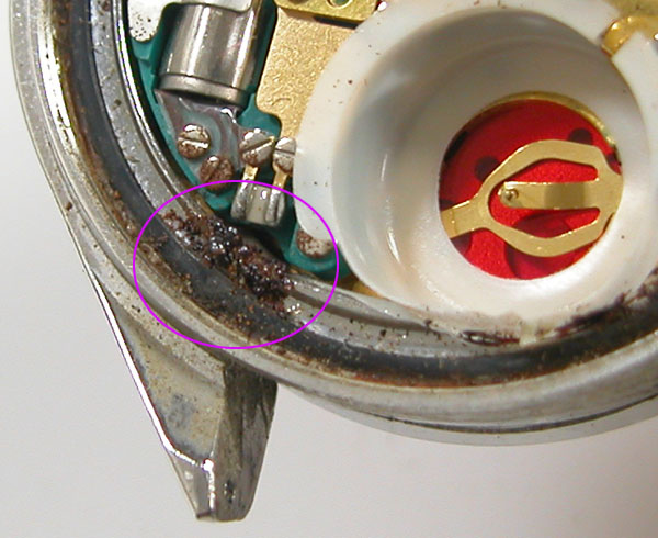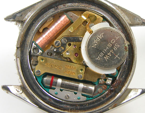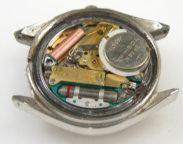 綺麗になったケースにムーブメントを戻して電池格納部をチェックします。
