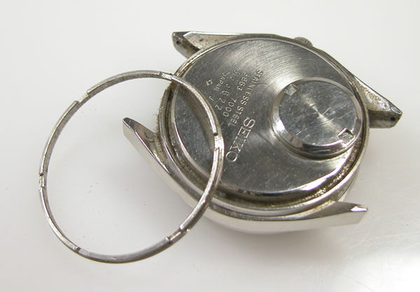 裏蓋はスクリューバック・リングで裏蓋を押さえつけた構造。