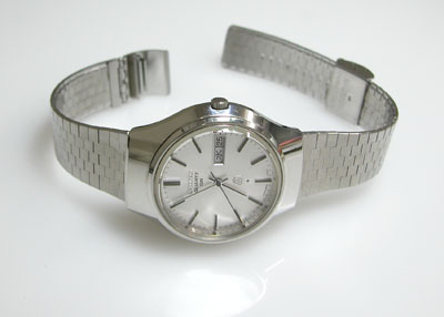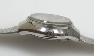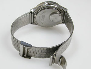 ステンレス無垢バンドですが薄型のスライドバックルはオールド・クォーツならでは。