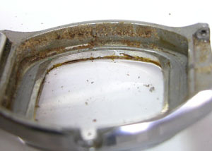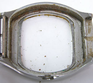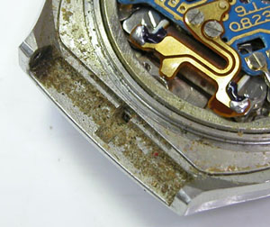 こうなった要因の一つでもあるかと。でも、この腕時計はオークション調達らしいですが状態からは相当無茶な使い方です。洗車くらいはへっちゃらって感じで。私がサイト内でも解説した「新品の頃は洗車や入浴でも異常が無かった=機能は永久的」との錯覚した使い方をした結果でもあります。「防水であっても湿気は避ける」これ腕時計の基本ですね。