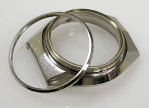 ガラス固定のベゼルリングを外します。更にガラス&台座リングも外して。