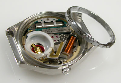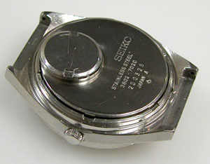 裏蓋”はめ込みタイプ”にスクリューバックリングで留めた構造。