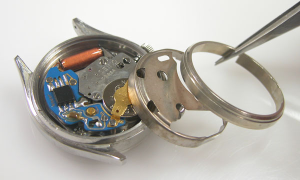 綺麗になったケースにムーブメントを戻して電池格納部をチェックします。