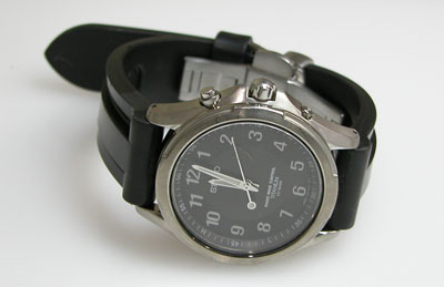 ベルトは交換されておりますようで。裏蓋は電波時計らしいガラスの蓋です。