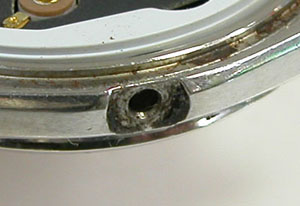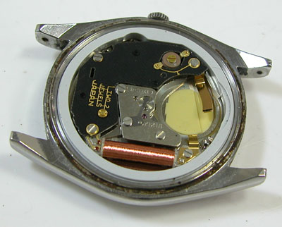 綺麗になったケースにムーブメントを戻して電池格納部をチェックします。