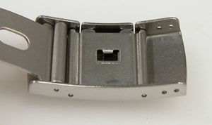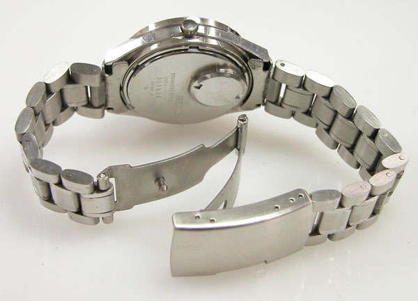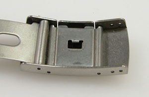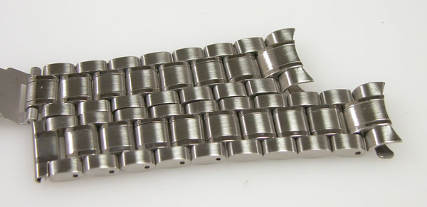ステンレス無垢バンドに三つ折れプッシュバックル。既製品のメタルブレスですが良く合わせる事が出来たと感心しきり。
