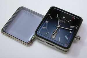ガラスの取付も重厚な感じ。なんたって高級腕時計ですからコストも掛けられる。