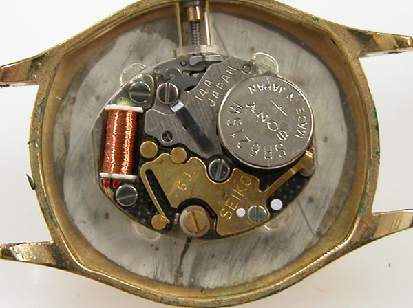 綺麗になったケースにムーブメントを戻して電池格納部をチェックします。
