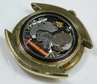 綺麗になったケースにムーブメントを戻して電池格納部をチェックします。