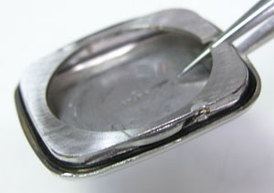 綺麗になったケースにムーブメントを戻して電池格納部をチェックします。