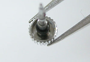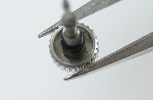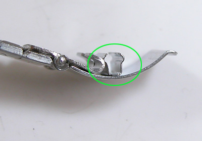 弓環がこの様に横にずれるとお知らせ頂きまして。これはこの部分を上と下からプレスして金具を締める訳ですが、当然ピンセット程度で出来る作業ではありません。