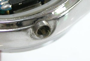 裏側でいうとこの位置ですか。工具をそのまま当てるとキズが付きますから、革などを当てて作業します。ただ金属が柔らかくカッチリ締まる感じが無いということは金属疲労も進んでおりますね。