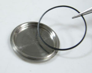 裏蓋の裏側もチェックします。パッキンは外して後で交換します。