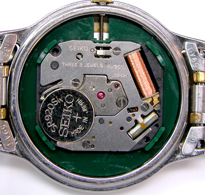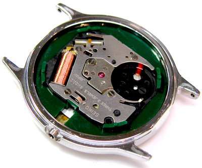 綺麗になったケースにムーブメントをもどして電池格納部をチェックします。