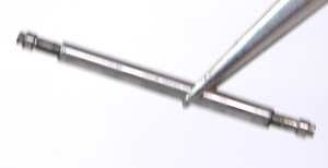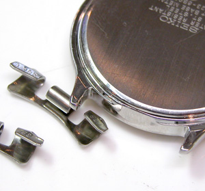 こちら裏蓋記載。バックルのバネ棒を外します。