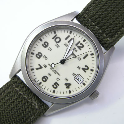 ミリタリーウォッチで布バンド。