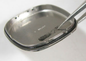 綺麗になったケースにムーブメントを戻して電池格納部をチェックします。