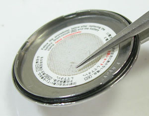 綺麗になったケースにムーブメントを戻して電池格納部をチェックします。