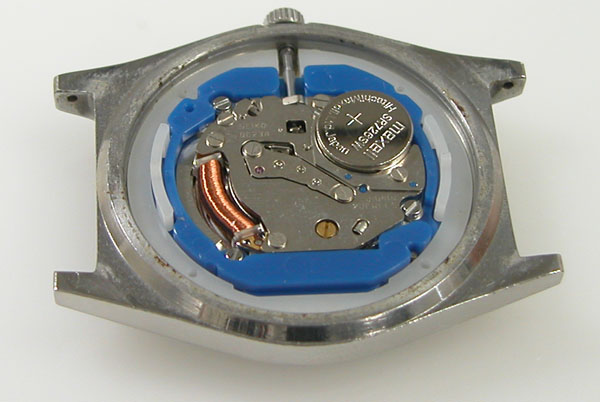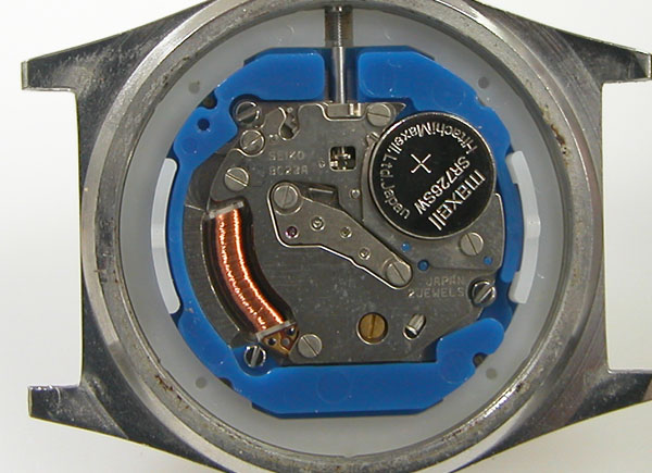 綺麗になったケースにムーブメントを戻して電池格納部をチェックします。