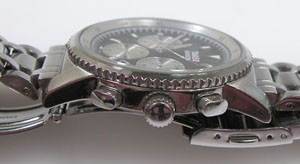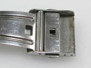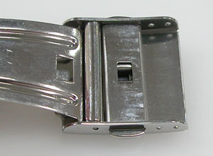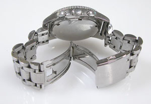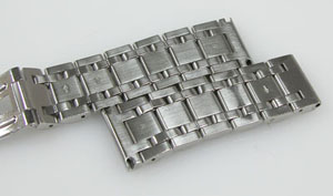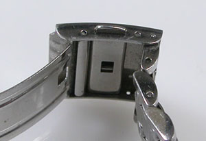 ステンレス無垢バンドに三つ折れプッシュバックル。