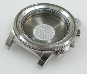 ガラスの内側に目盛リングがあるので裏蓋を閉めてまるごと洗浄して浸水が無いかチェックします。