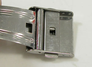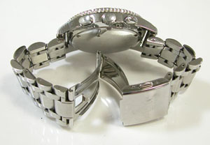 ステンレス無垢バンドに三つ折れプッシュバックル。
