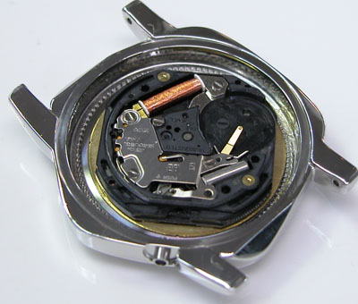綺麗になったケースにムーブメントを戻して電池格納部をチェックします。