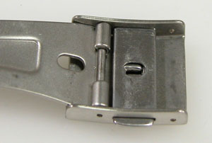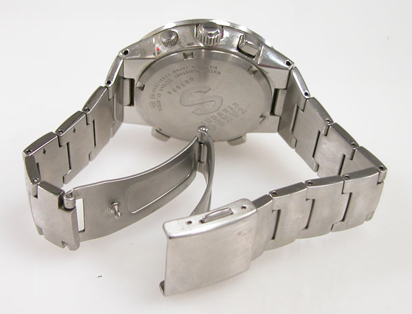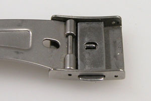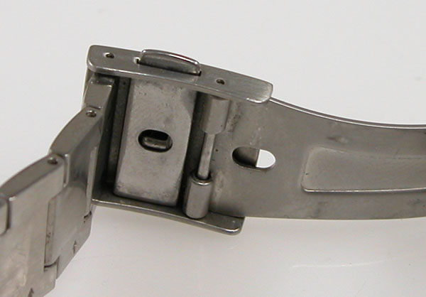 ステンレス無垢バンドに三つ折れプッシュバックル。