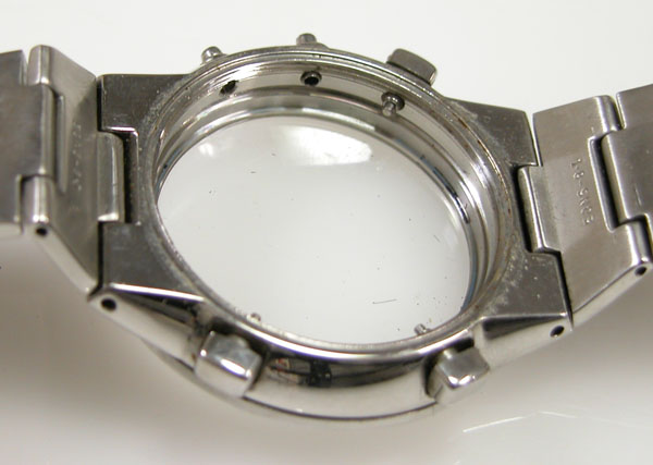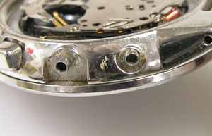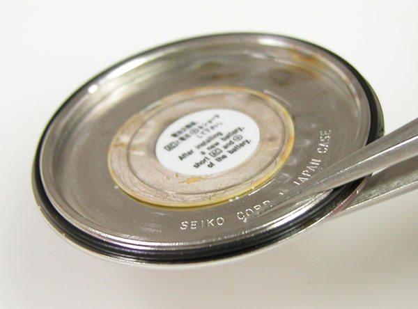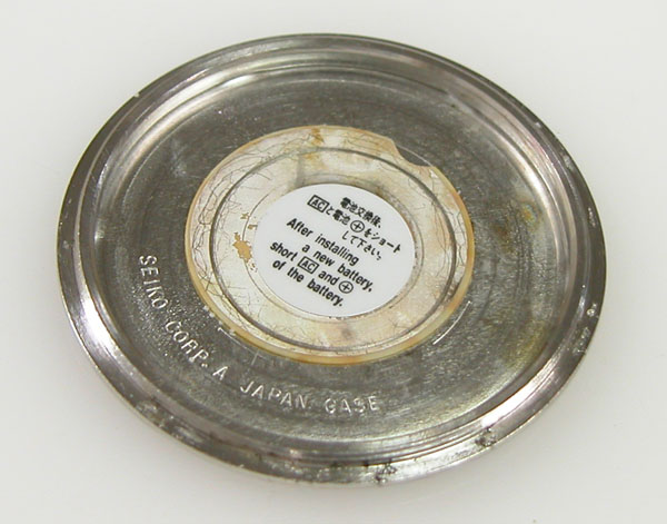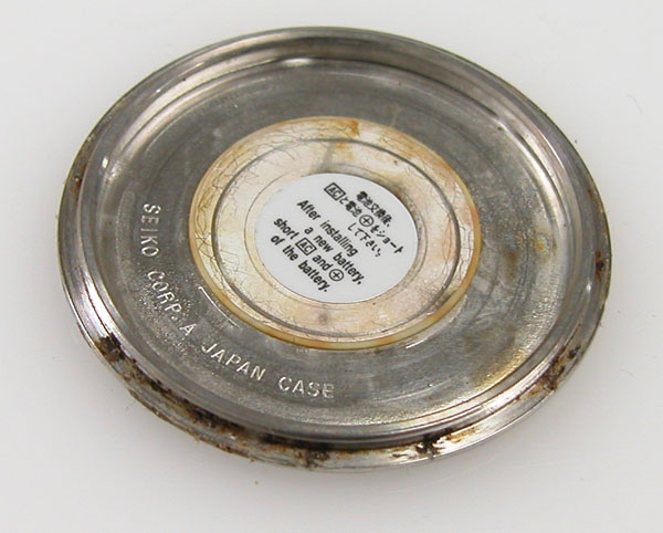 裏蓋の裏側もチェックして。サビが目立ちますがパッキンが入って居ない。