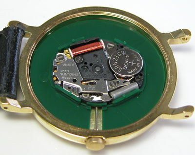 綺麗になったケースにムーブメントを戻して電池格納部をチェックします。