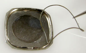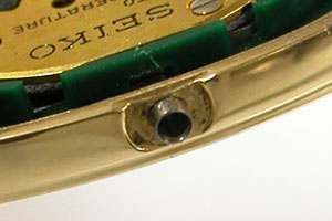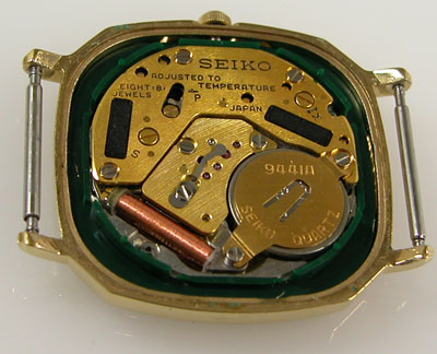 綺麗になったケースにムーブメントを戻して電池格納部をチェックします。
